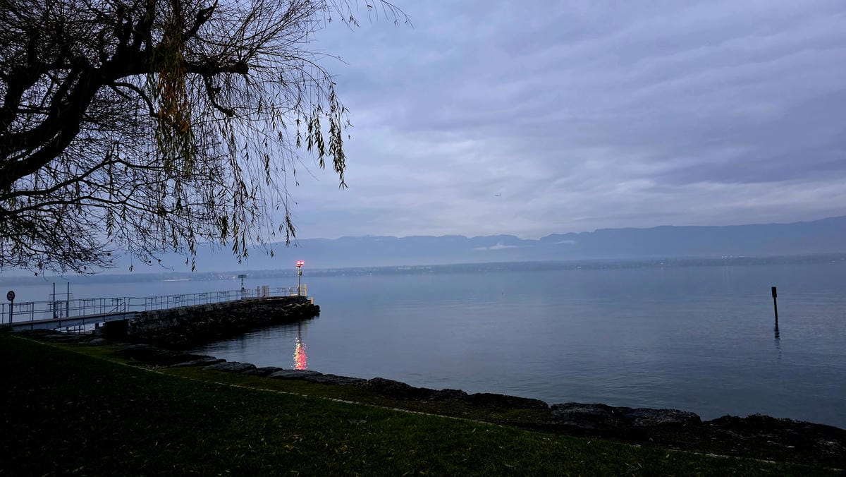 The View: Relax on the platform as you watch the sunset cast an orange glow over the water and the distant Jura Mountains.